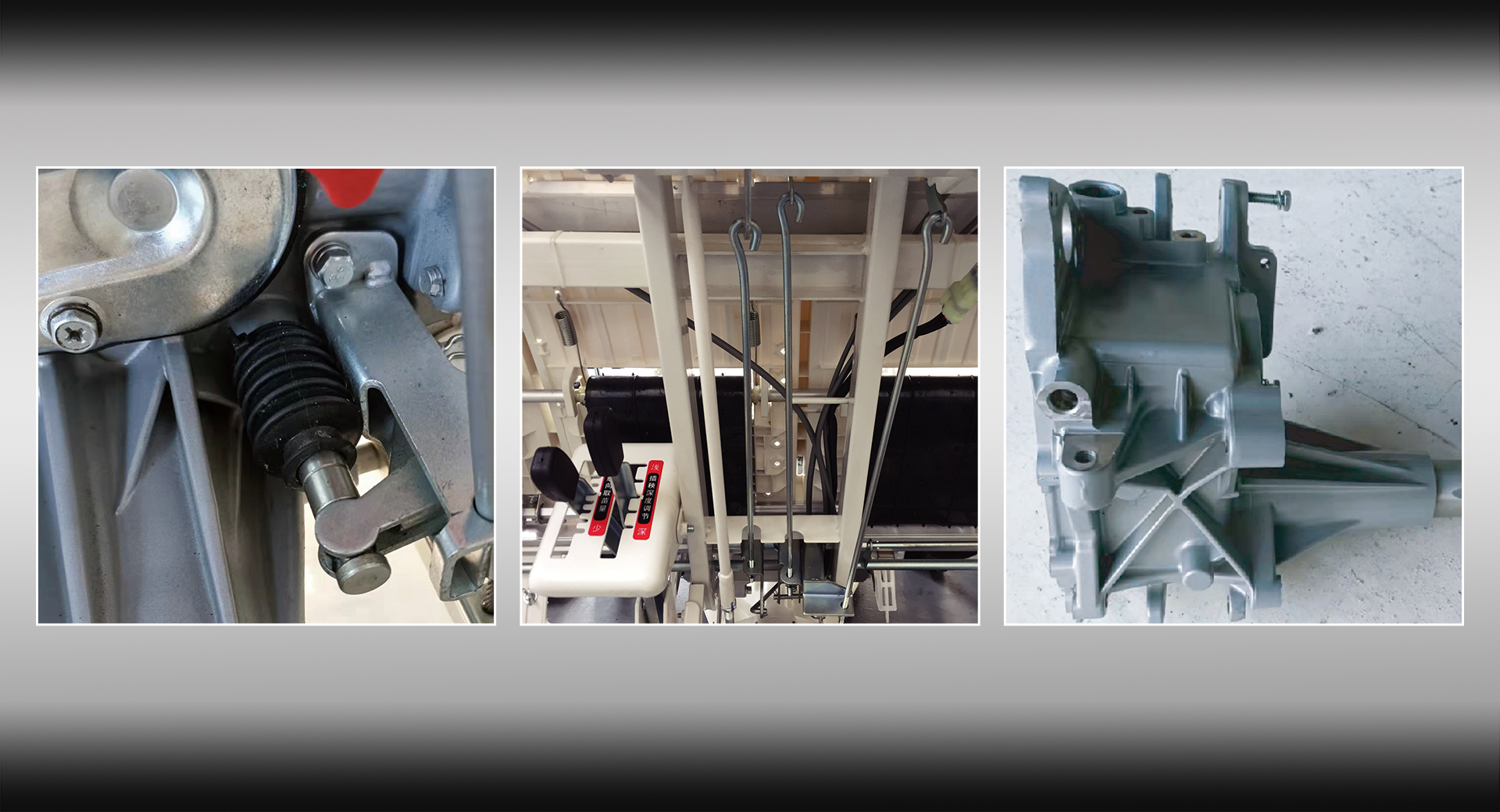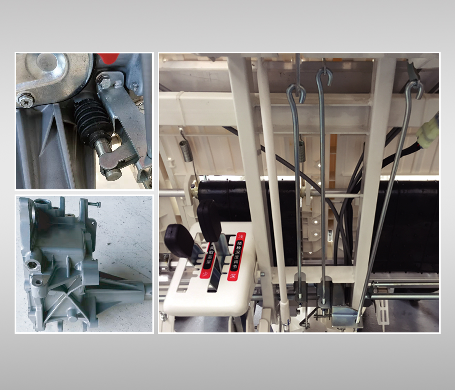 具備變速檔位護(hù)套,有效防止泥水侵蝕。 加強(qiáng)型Φ6毫米直徑操縱拉桿。 變速箱強(qiáng)化設(shè)計(jì),強(qiáng)度高,抗拖拽性好;關(guān)鍵軸承采用進(jìn)口件。