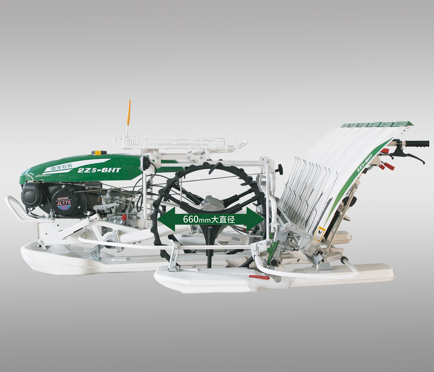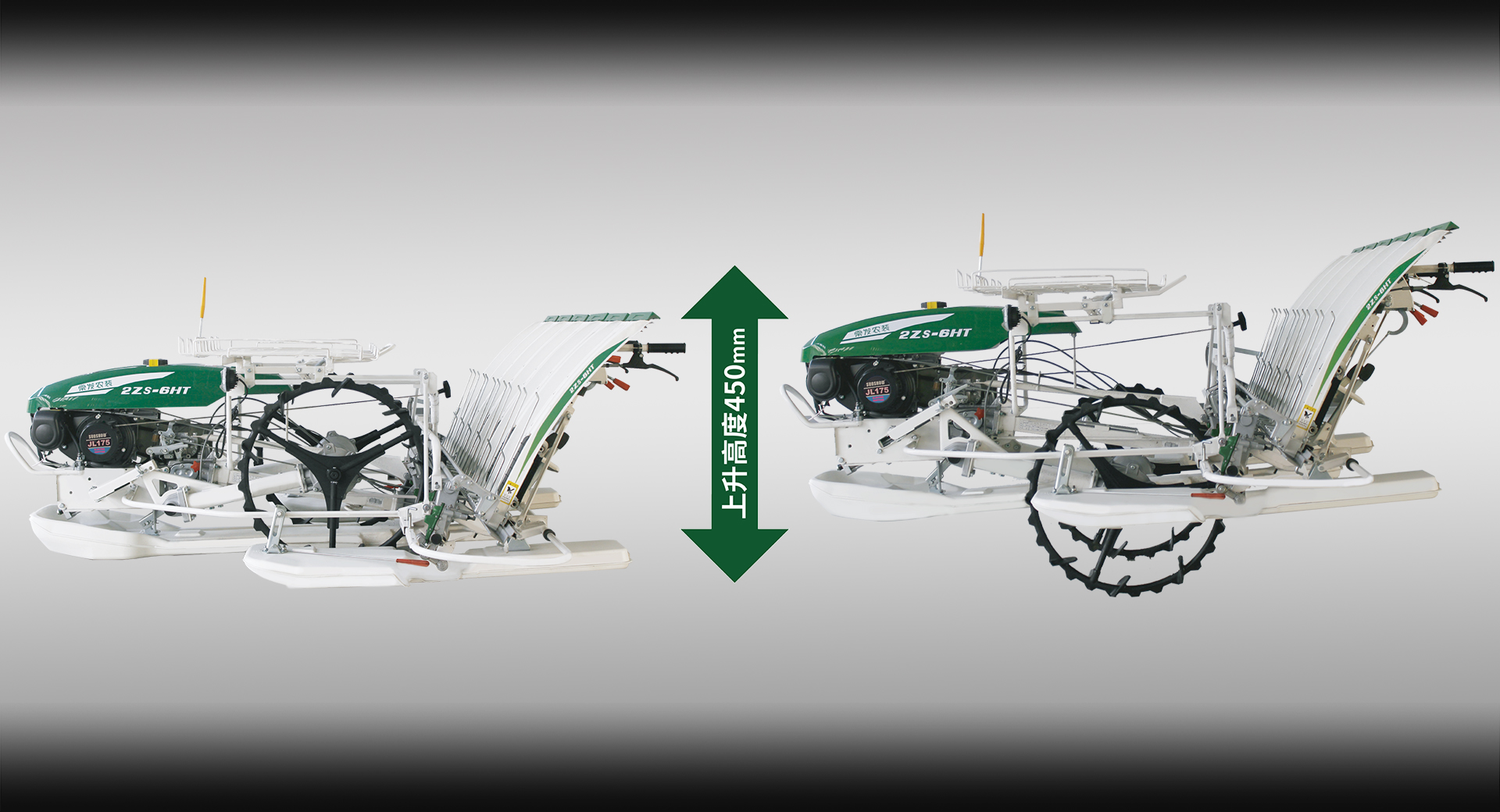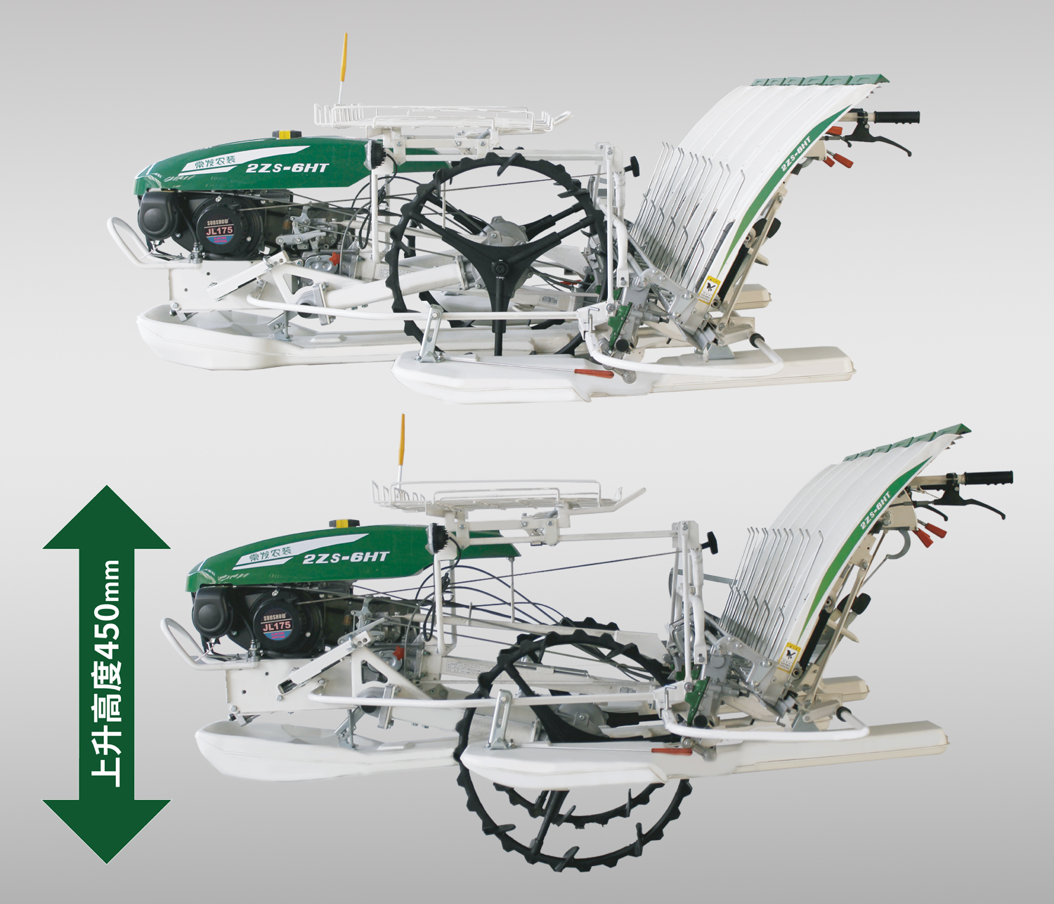 整機(jī)上升高度450毫米,濕爛田塊適應(yīng)性好。