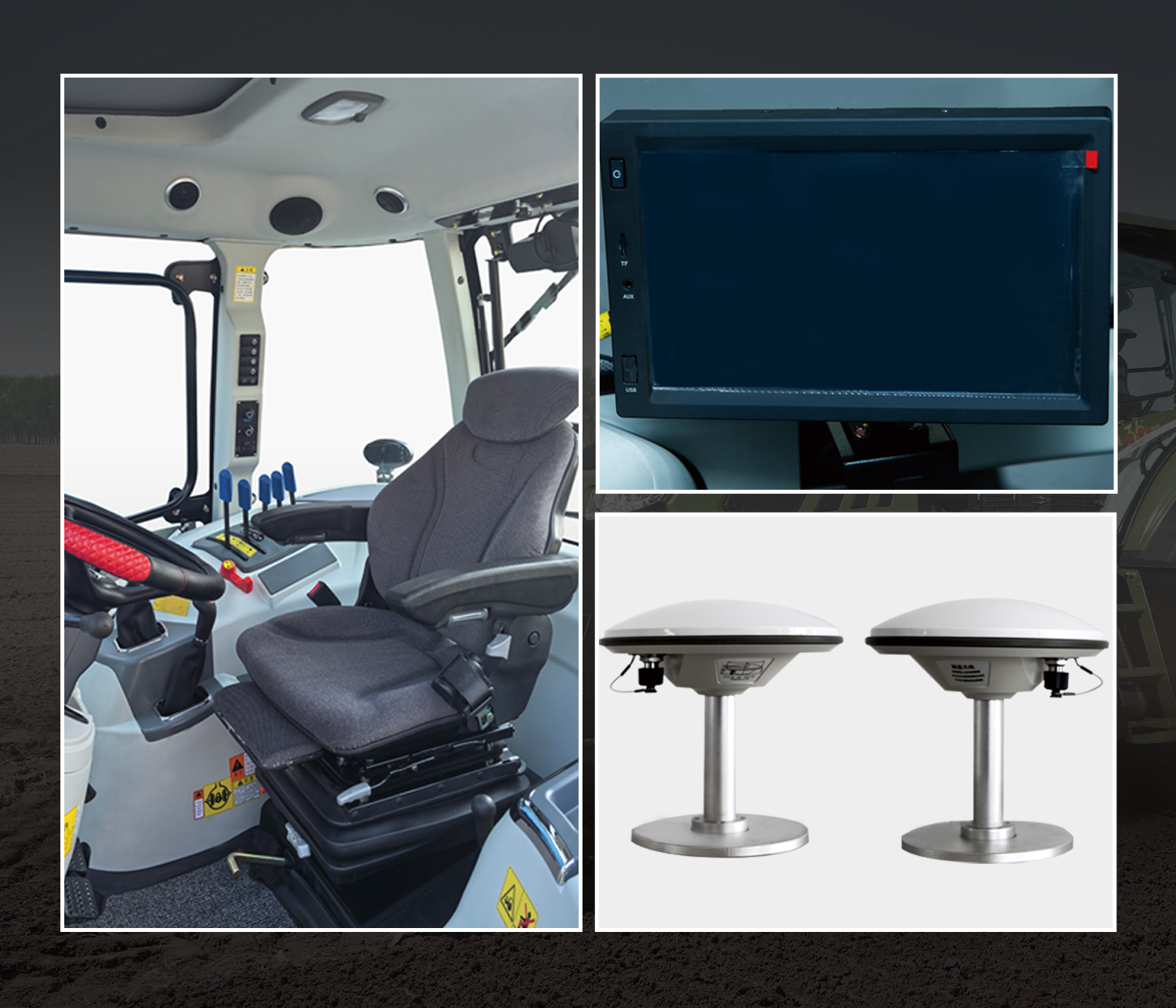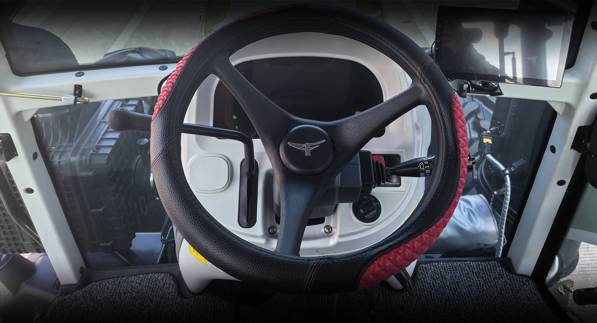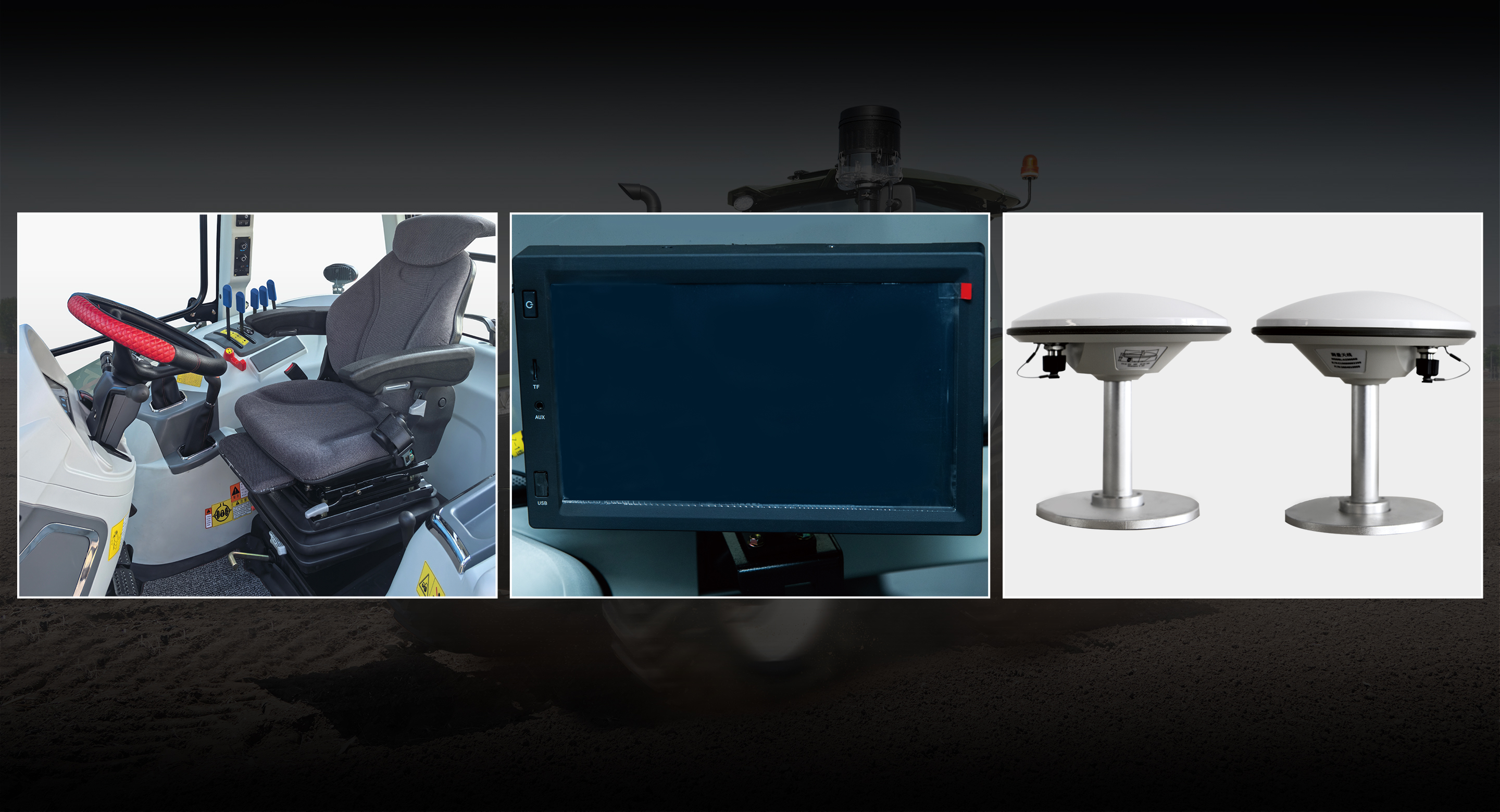 汽車軟包內飾、旋轉可躺懸浮減震座椅、全液晶儀表、智能綜合顯示屏、無級可調方向盤、全包彈性地板墊、高亮度工作燈。 大量應用雙阻分隔音材料,駕駛室密封效果好,駕駛室內耳旁噪聲僅86.8分貝。 干粉噴射不進灰,防塵效果好;20分鐘淋雨無滲漏,防水效果好。環繞式出風口,空調制冷效果更好。 操縱布置在雙手觸及范圍,符合人機工程學。 配備手機充電接口、USB接口、茶杯座、點煙器、儲物盒,符合人性化設計。 選裝常發原裝輔助駕駛系統,高精度直線作業,大幅度提高土壤利用率,減輕駕駛員勞動強度。