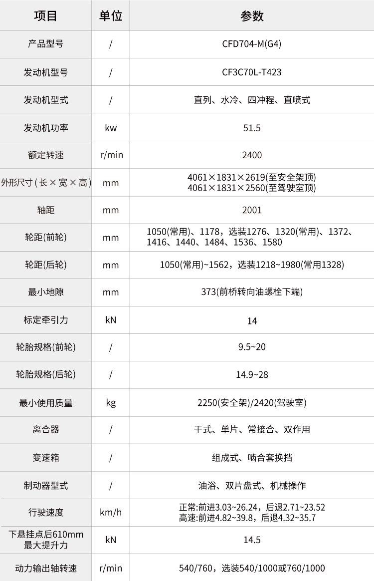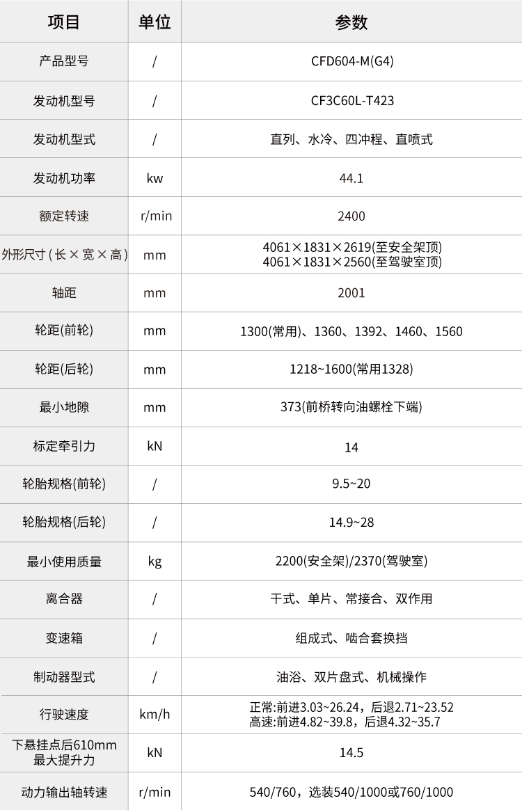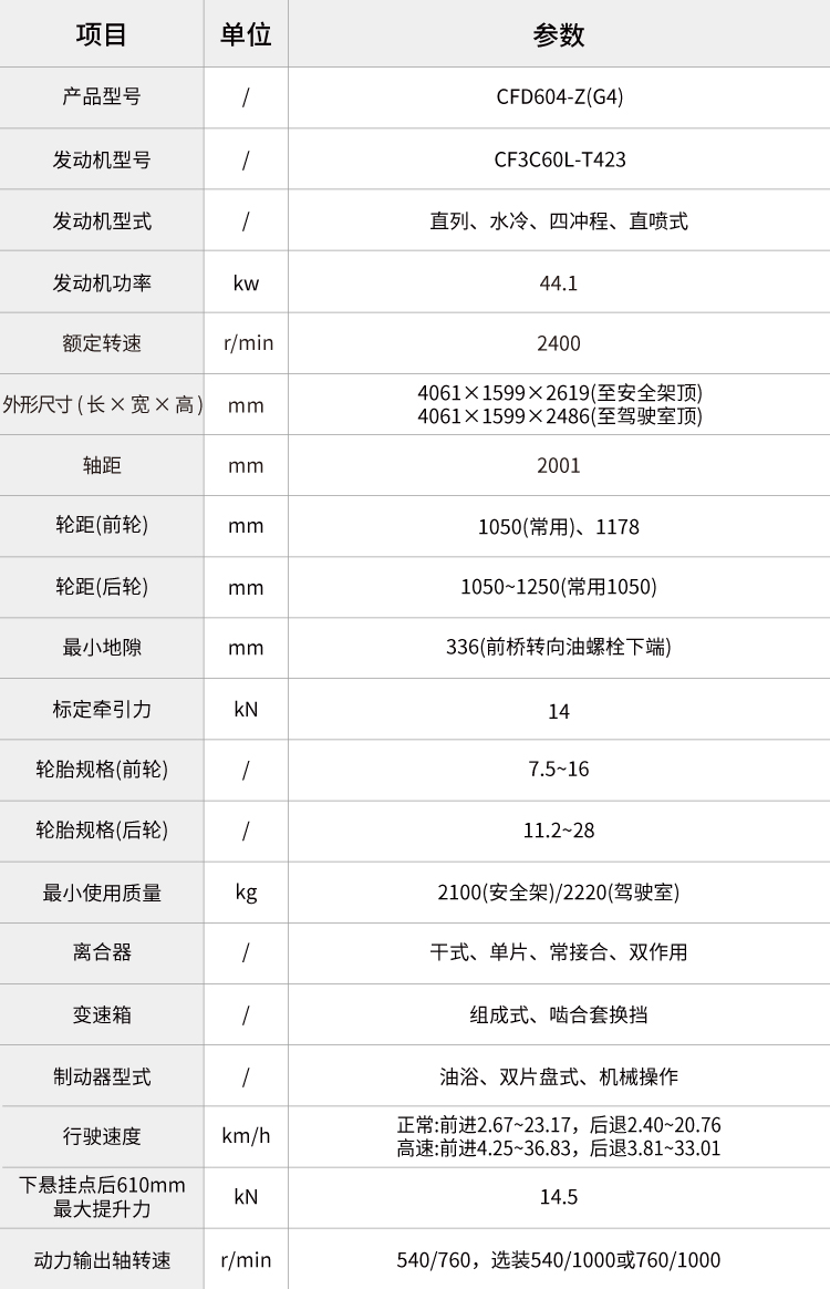 加長軸距(2001mm)、加高車身、加粗半軸,整體外觀更大,牽引性能更強(qiáng),可靠性更好;最大輪胎配置大。(可選平花胎前平花9.5-20,后平花 14.9-28)