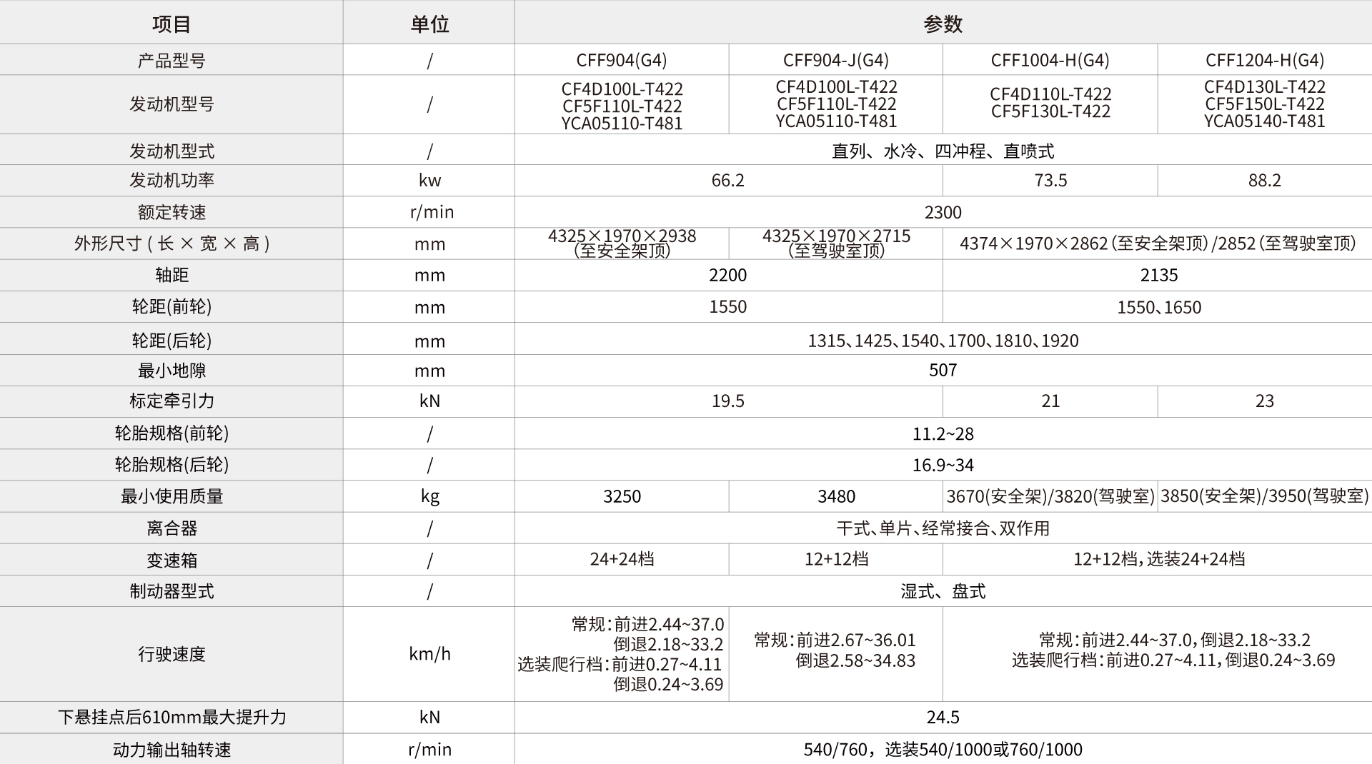 作業(yè)檔位多,標配為12+12檔變速箱,選裝為24+24爬 行檔。