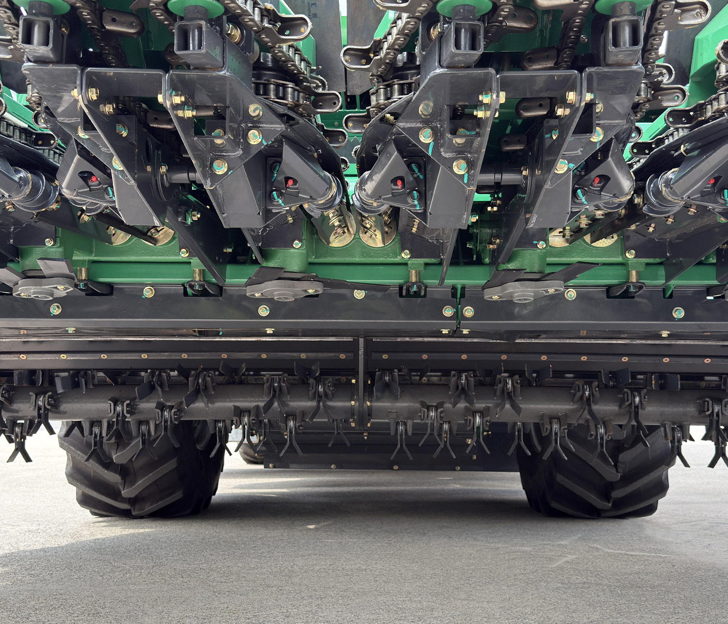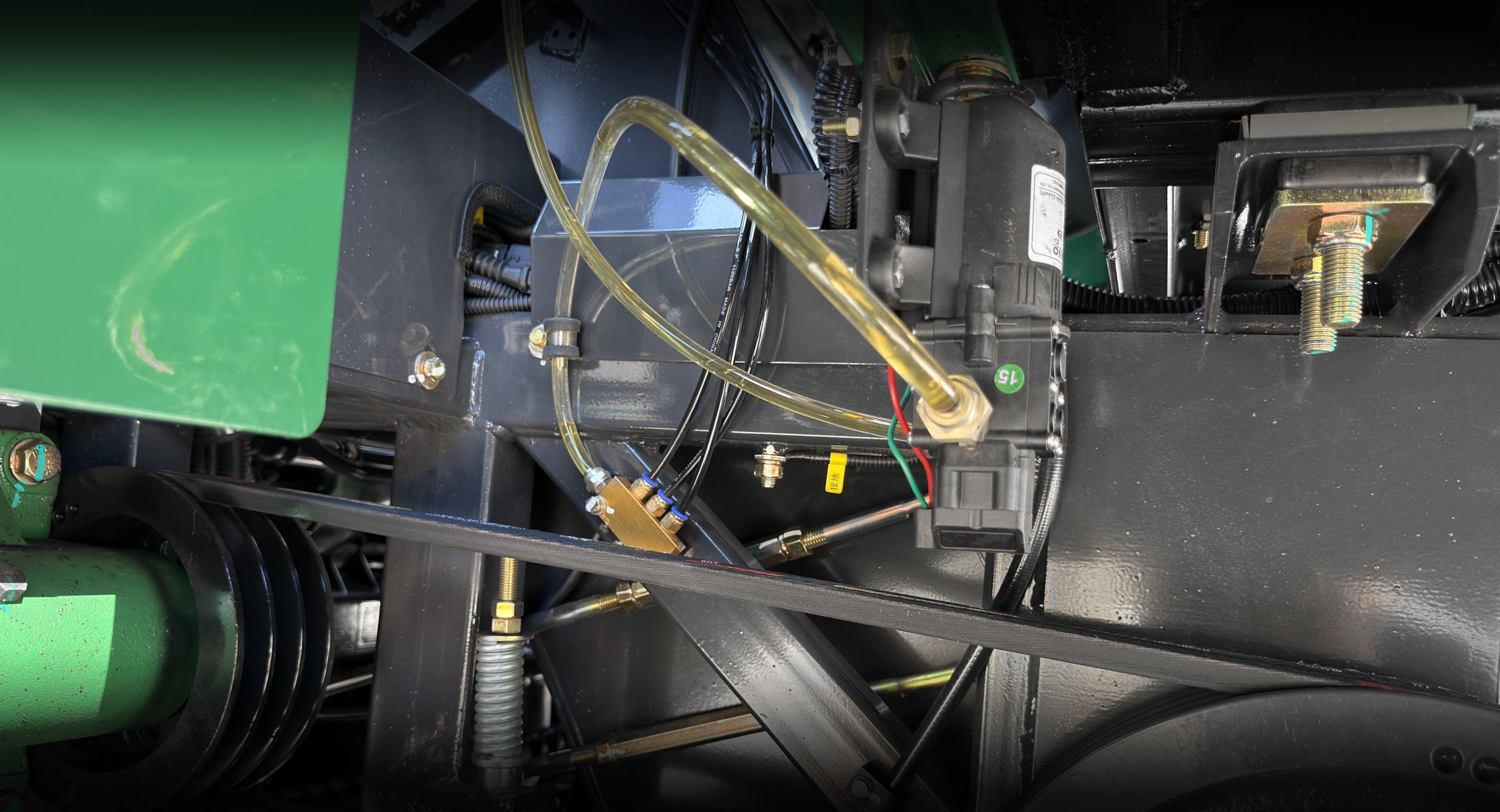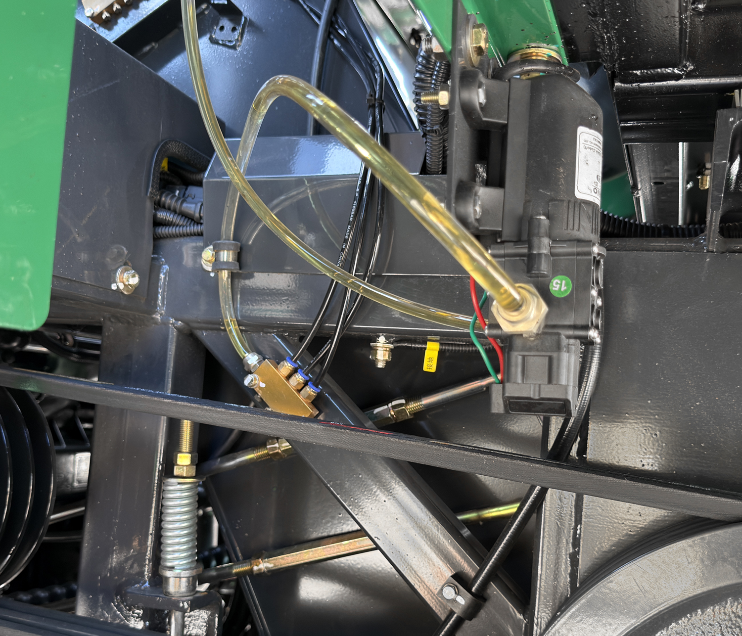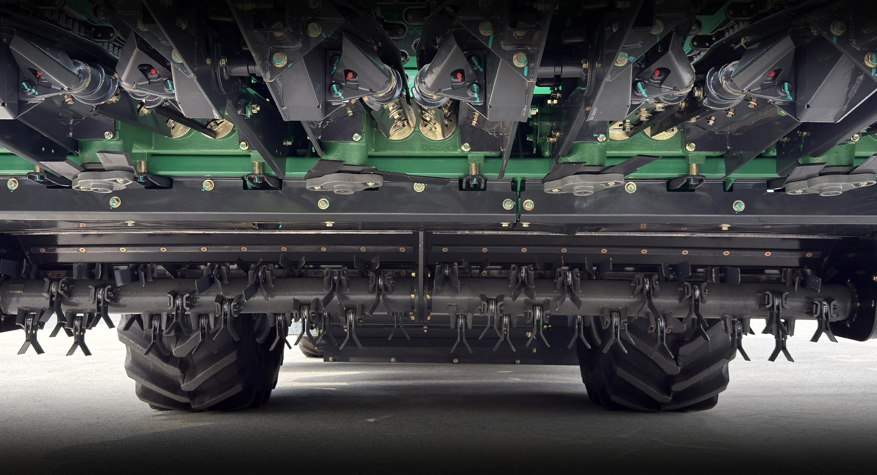 標配靜液壓驅(qū)動,配置直聯(lián)90CC液壓泵、馬達+1000系列加強型4擋變速箱+加寬子午胎,兼顧作業(yè)與轉(zhuǎn)場工況,作業(yè)速度快,轉(zhuǎn)場速度可達40公里/小時;轉(zhuǎn)彎半徑5.45米,田間地頭更靈活;一體式高強度機架,底盤穩(wěn)定可靠。
