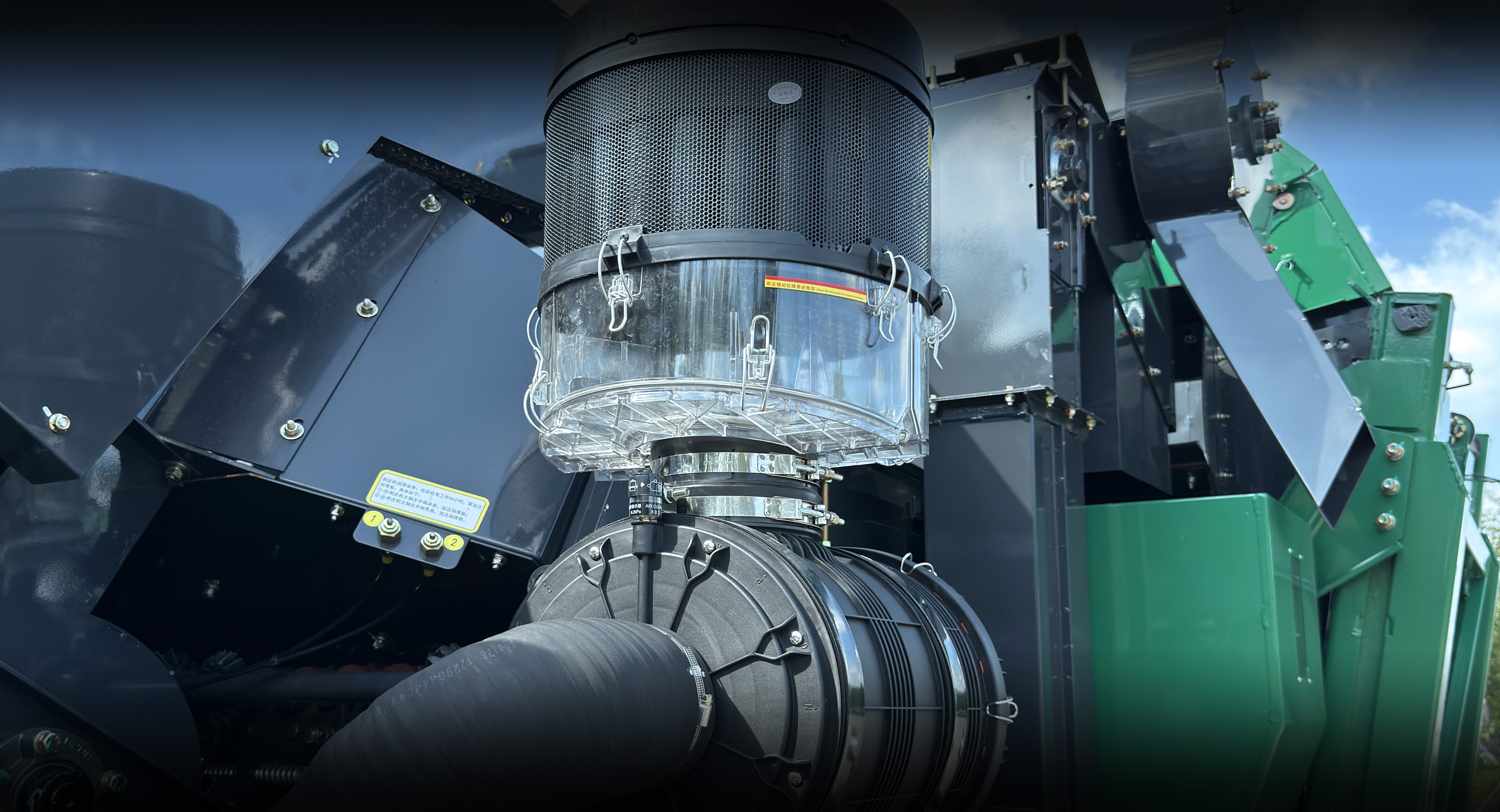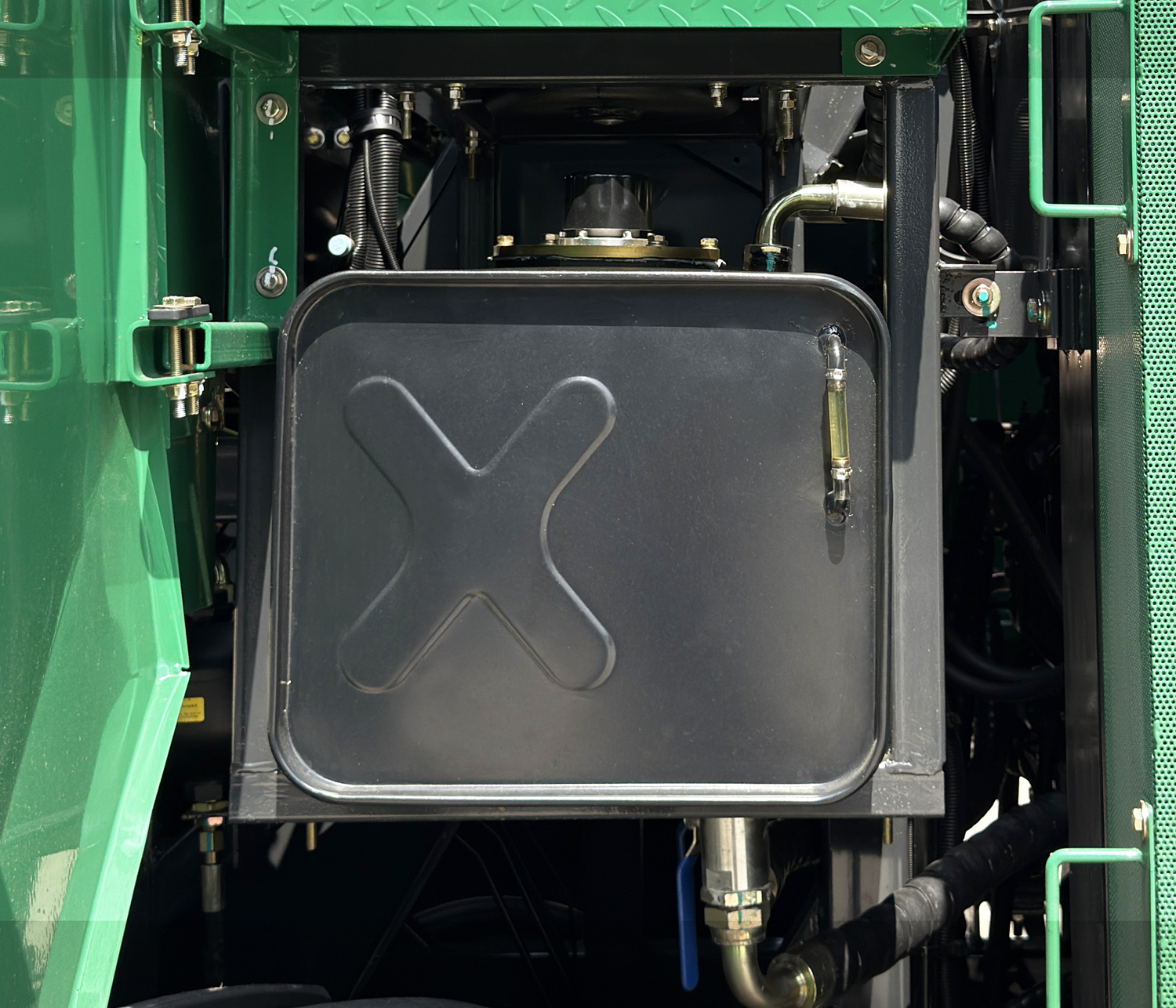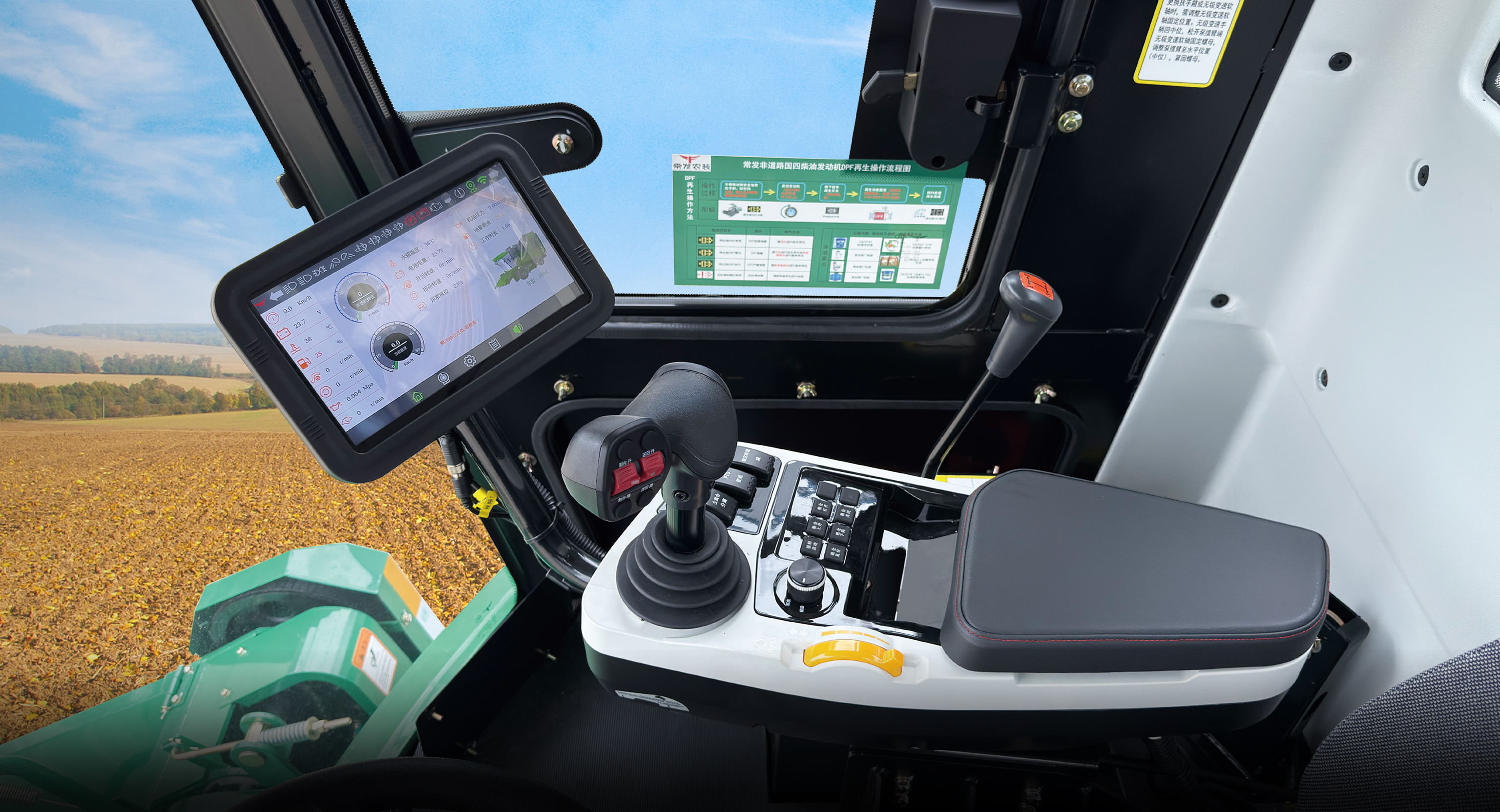 升運系統(tǒng)配備三級排雜風機,能適應不同收獲期的秸稈排雜需求糧倉;標配4.6米二次卸糧,適合各類接糧車需求。