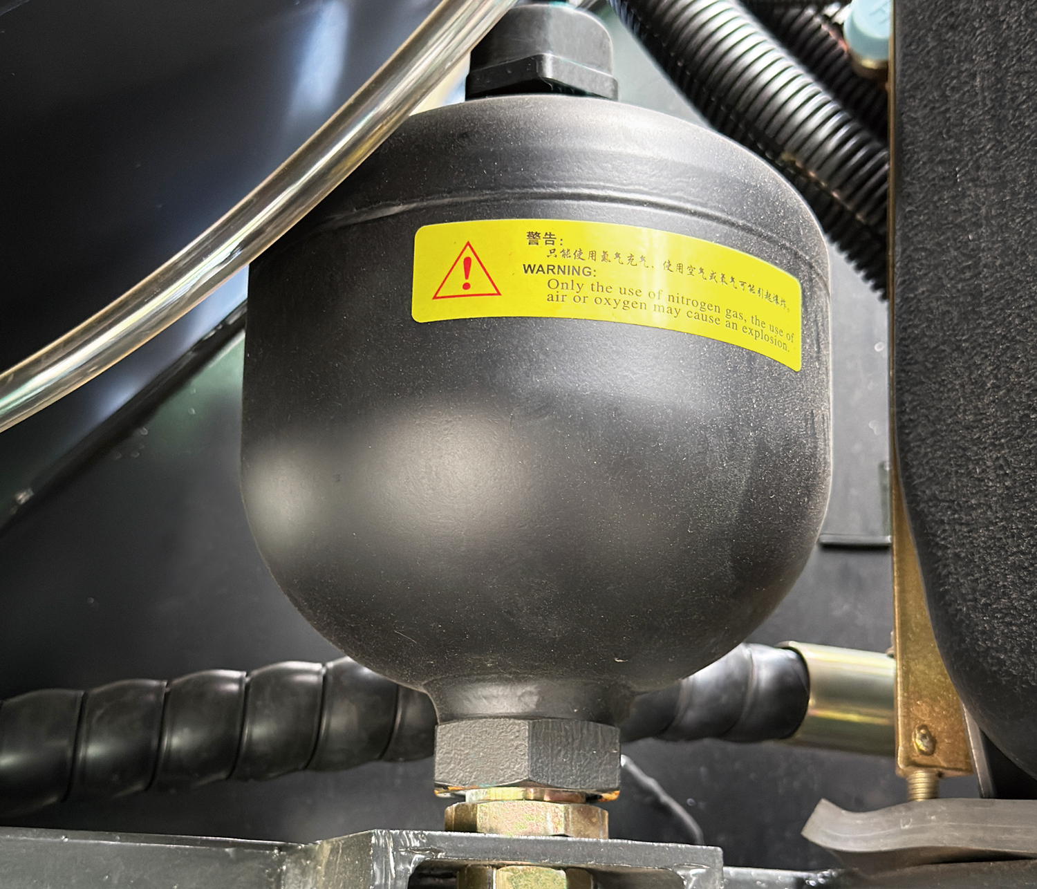 割臺標配蓄能器,優(yōu)化減震參數(shù),有效降低割臺升降以及行走顛簸產(chǎn)生的沖擊,減少整機震動。